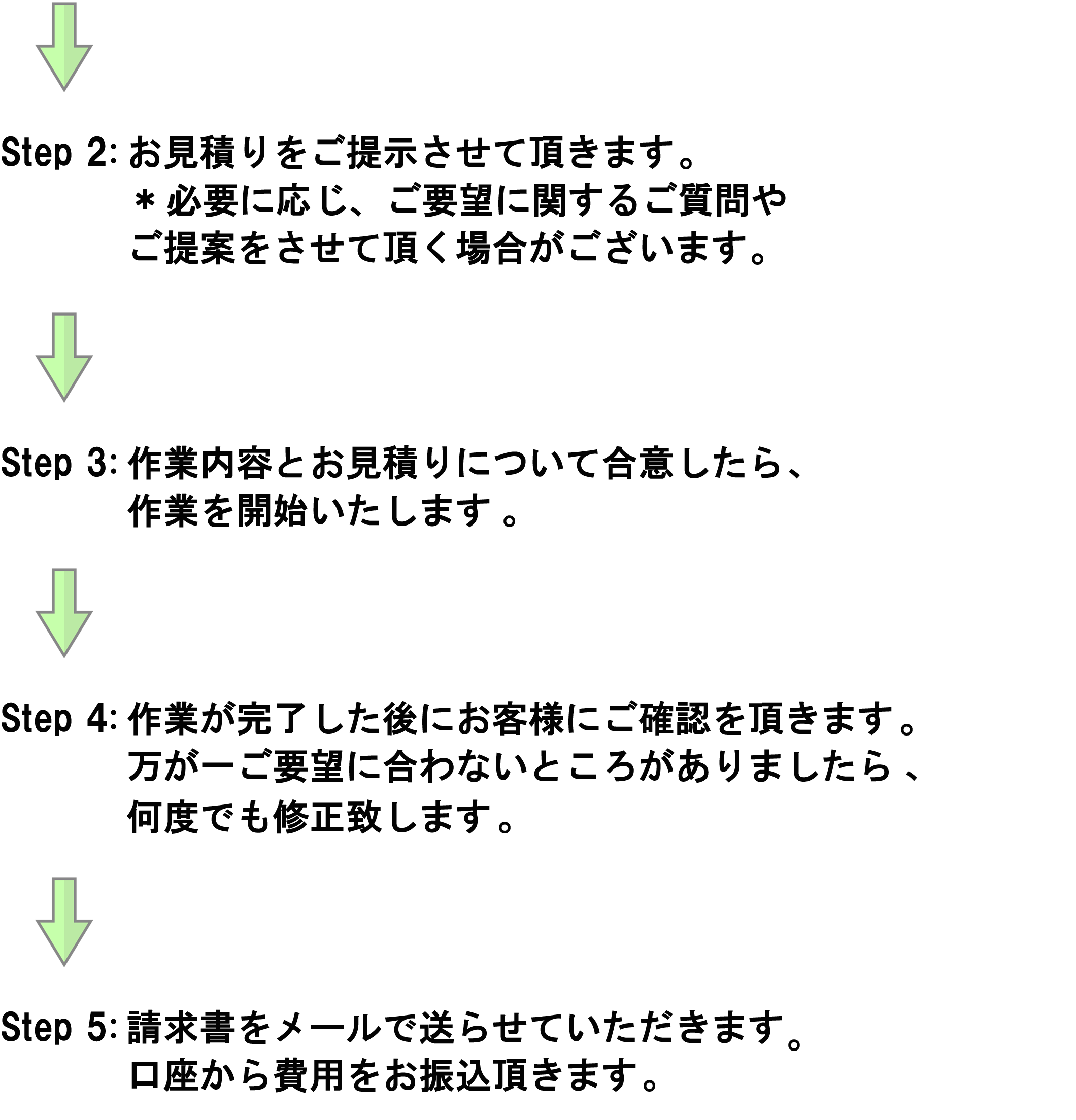 作業が完了しましたら、お支払方法を記載したメールをお客様宛にお送りさせていただきます。