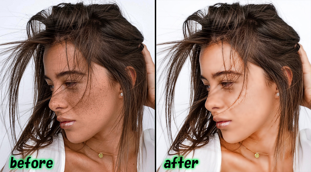 女性の肌、口元まわりを補正し自然な美肌にすることで、より若々しい印象になります。