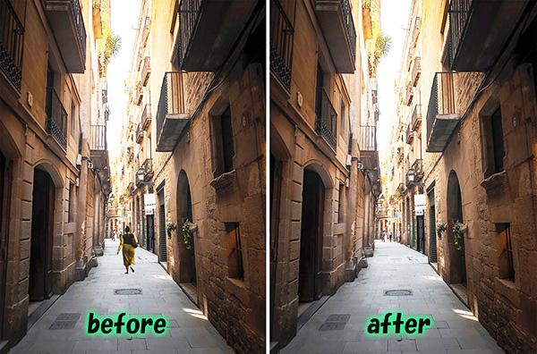 観光地でのスナップ写真に観光客が写り込んでしまうことはよくありますよね。そんな時に、人物を消去してスッキリした写真に仕上げることが出来ます。